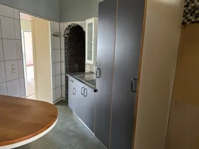 Die Wohnung ist renovierungsbedürftig, was Ihnen die Möglichkeit gibt, Ihr neues Zuhause ganz nach Ihren individuellen Vorstellungen zu gestalten. Mit Laminatboden, einer Gas-Etagenheizung und Kunststofffenstern ist bereits eine solide Grundausstattung vorhanden. Eine in die Jahre gekommene Einbauküche sowie eine Dusche sind ebenfalls vorhanden, allerdings müsste ein komplett neues Badezimmer inklusive WC installiert werden. Zudem müssen sämtliche elektrische Leitungen erneuert werden. Die Räume sind flexibel gestaltbar und bieten Ihnen somit die Freiheit, die Wohnung nach Ihren persönlichen Bedürfnissen zu kreieren.