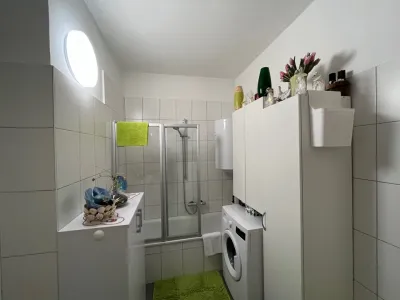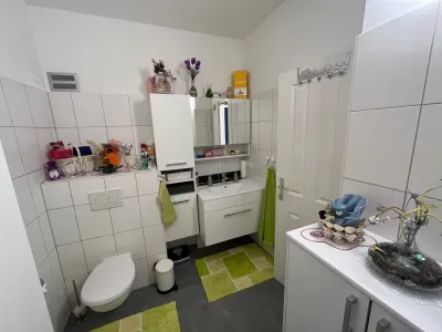 Das großzügige Badezimmer ist mit einer Badewanne und einem WC ausgestattet und bietet ausreichend Platz für Ihre persönlichen Pflegeutensilien. Ein großer Abstellraum sorgt für zusätzlichen Stauraum und Ordnung in der Wohnung.