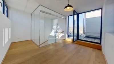 Die Wohnung ist ausgestattet mit einer geschmackvollen Küche und einem hochwertigen Badezimmer. In allen Wohnräumen wurden Echtholz Parkettböden Eiche Natur verlegt. Über beide Ebenen erstreckt sich eine angenehme Fußbodenheizung und für die heißen Sommertage gibt es eine Klimaanlage.