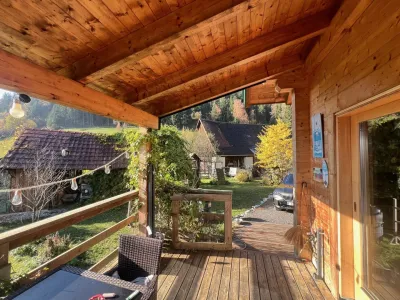 Das Herzstück dieser Anlage ist das gemütliche Blockhaus mit 136 m² Wohnfläche, das sich harmonisch in die Landschaft einfügt. Genießen Sie die sonnigen Tage auf der großzügigen Terrasse und erleben Sie gemütliche Abende am Kaminofen. Die Pelletsheizung sorgt dabei stets für wohlige Wärme. Der liebevoll angelegte Garten mit vielen Streuobstbäumen lädt zum Verweilen ein und bietet Raum für Ihre eigenen Gartenprojekte.