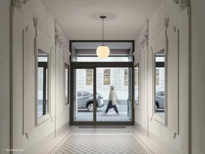Mit einer behutsamen Sanierung verhelfen wir dem 1893 errichteten Haus in der Geblergasse zu seiner ursprünglichen Strahlkraft zurück. Die wunderschön gegliederte Fassade mit ihren zahlreichen Ornamenten bleibt erhalten und das Entrée wird mit Stuck und Pilastern wiederhergestellt.
