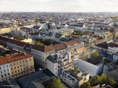 Und im neu errichteten Dachgeschoß sowie im Hofhaus laden insgesamt 13 exklusive Wohnungen zum „Daheimfühlen“ ein.