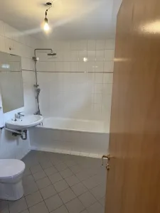 Im Obergeschoss befinden sich 2 Schlafzimmer und ein großzügiges Bad mit Badewanne, WC und Waschmaschinenanschluss.