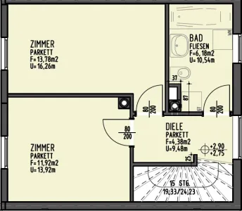 Darüberhinaus ist der Wohnung ein eigenes separates Kellerabteil im Untergeschoss zugeteilt und ein allgemeiner Waschraum steht ebenso zur Verfügung.