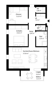 Die 3-Zimmer-Wohnung im Erstbezug bietet ca. 73 m² Wohnfläche und überzeugt durch eine intelligente Raumaufteilung und helle, freundliche Freiflächen: Balkon und Loggia erweitern den Wohnbereich nach außen und laden zum Verweilen ein.