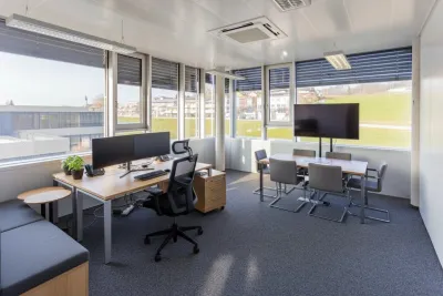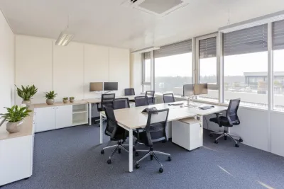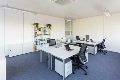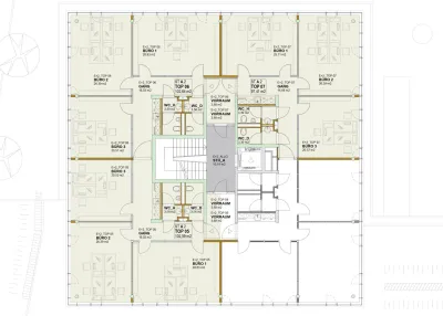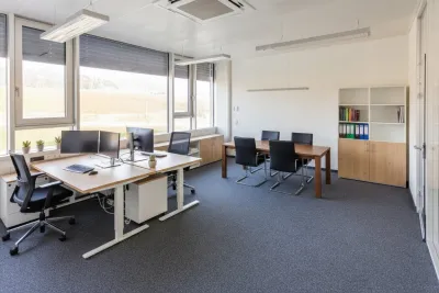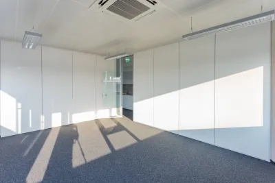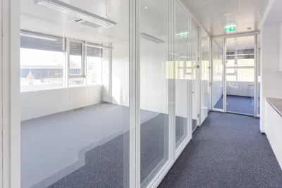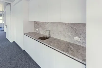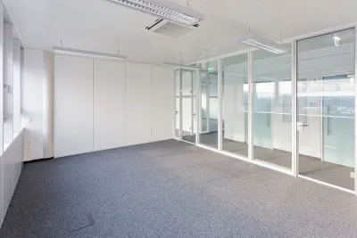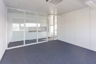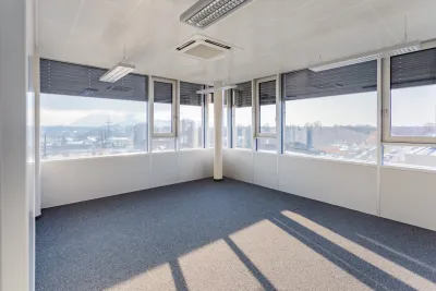 Die moderne Bürofläche umfasst 9 Büroräume, je 3 geschlechtergetrennte WCs sowie Teeküchen in den Gangbereichen. Für Komfort und angenehmes Arbeiten sorgen die elektrische Beschattung sowie die für jeden Raum einzeln steuerbare Heizung und Kühlung. Optional sind ausreichend Tiefgaragen-Stellplätze verfügbar.