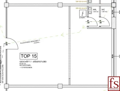 - 62,65 m² Geschäftsfläche (inkl. Einbauküche) – ostseitige, ruhige Lage