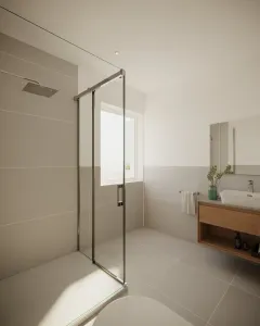 Die Wohnungen verbinden modernes Wohngefühl mit alpinem Charme. Hochwertige Materialien wie geölte Eichen-Landhausdielen, warme Naturtöne und große Fensterfronten schaffen eine Atmosphäre, die sofort Geborgenheit ausstrahlt. Die Wohnräume sind hell und offen gestaltet, mit fließenden Übergängen zwischen Kochen, Essen und Wohnen – der perfekte Rahmen für gemütliche Abende mit Familie oder Freunden. An kalten Wintertagen sorgt die angenehme Fußbodenheizung, gespeist von einer umweltfreundlichen Luft-Wasser-Wärmepumpe, für wohlige Wärme im ganzen Raum. Im stilvoll ausgestatteten Bad lädt eine moderne Dusche dazu ein, sich nach einem erlebnisreichen Tag in den Bergen zu erfrischen und zu entspannen.