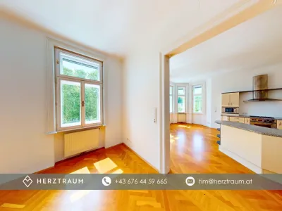 In einem prachtvollen Zinshaus mit gegliederter Fassade und historischem Flair wird hier eine besondere Gelegenheit geboten: Zum Verkauf stehen zwei nebeneinanderliegende Wohnungen im 2. Obergeschoss, die gemeinsam eine Wohnfläche von über 157 m² ergeben.