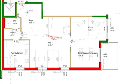 Die Immobilie besticht durch eine moderne Ausstattung und helle Räumlichkeiten, die eine angenehme Arbeitsatmosphäre schaffen. Jeder Raum verfügt über große Fenster, die für ausreichend Tageslicht sorgen.