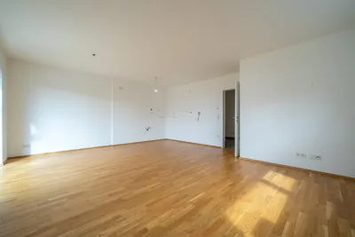 Unsere schöne 3 Zimmerwohnung hat eine Wohnnutzfläche von ca. 78 m², bestehend aus einem Wohnzimmer, einer Kochnische, zwei Zimmer, einem Abstellraum, einem Badezimmer, einem WC, einem Vorraum, sowie einem Balkon mit ca. 9m².