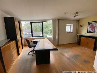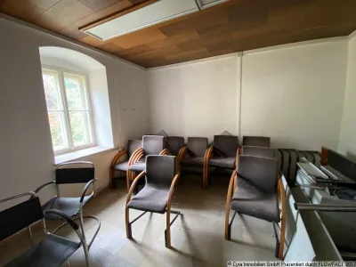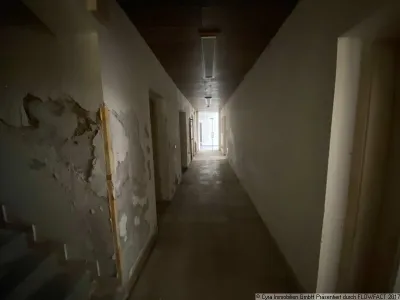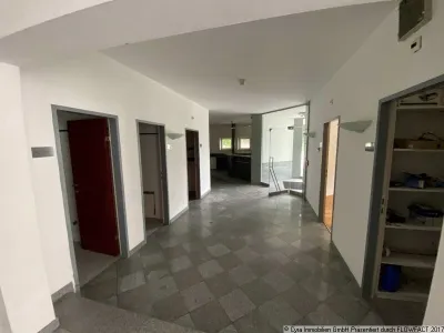 Der Altbau wurde 1992 saniert, ist aber wieder sanierungsbedürftig. Aus unserer Sicht würde sich eine Generalsanierung mit teilweiser Umnutzung auf Wohnungen anbieten oder ein Komplettabriß mit Neubau eines Wohn- und Bürohauses.