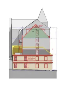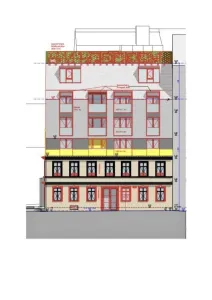 Ein Ausbau des Rohdachbodens wurde bereits baubewilligt, die Baugenehmigung zur Abtragung der bestehenden Dachkonstruktion und den Ausbau des Dachgeschosses liegt bereits vor. Sie ermöglicht eine Aufstockung um zwei weitere Festgeschosse, sowie zwei Dachgeschosse. Durch den Um- und Ausbau würde sich eine Wohnnutzfläche von insgesamt ca. 767,76 m2 ergeben. Für alle Wohnungen sind Außenflächen in Form von Balkon, Terrasse oder Loggia geplant. Ebenso kann laut Einreichplan ein neues und barrierefreies Treppenhaus mit Personenlift, der im Innenhof vom Erdgeschoss bis ins Dachgeschoss führen soll, errichtet werden. Weiteres sind ein Kinderwagen- und Fahrradabstellraum im Innenhof geplant. Auf dem Dach ist eine Photovoltaikanlage mit 18 Modulen vorgesehen.