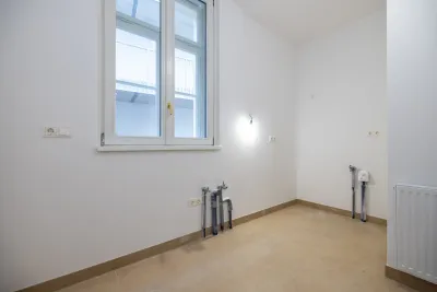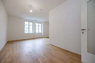 Diese schöne Garconniere befindet sich im Erdgeschoss eines modernen Gebäudes, ist ca. 48m² groß und gliedert sich in eine seperat begehbare Küche, ein helles und geräumiges Wohn- und Schlafzimmer, einen Vorraum und ein Badezimmer mit WC, bodenebener Dusche und Handwaschbecken.