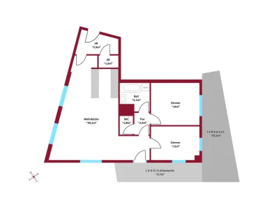 Beim Betreten der Wohnung empfängt Sie ein geräumiger Vorraum mit eingebauter Garderobe. Direkt angrenzend befindet sich ein praktischer Abstellraum. Das Herzstück der Wohnung ist die moderne Wohnküche mit direktem Zugang zur Loggia. Zwei Schlafzimmer bieten genügend Platz für individuelle Wohnideen. Das Badezimmer ist mit einer Badewanne ausgestattet, während das WC separat liegt.