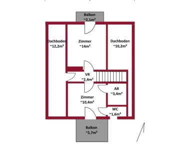Die Raumaufteilung gliedert sich wie folgt:
