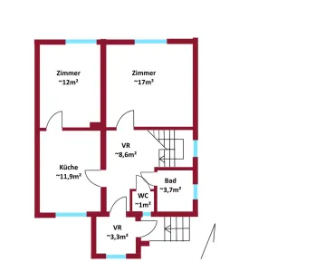 Das Haus verfügt über 2 Wohn-Etagen sowie einen Keller.