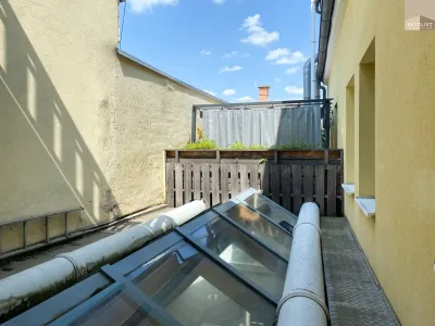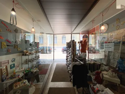 Das Geschäftslokal im Erdgeschoss bietet eine großzügige Nutzfläche von ca. 121 m². Diese erstreckt sich über drei geräumige Zimmer, einen Innenhof mit ansprechendem Glasdach, einen Vorraum und eine Toilettenanlage.