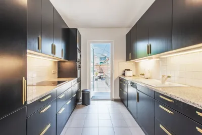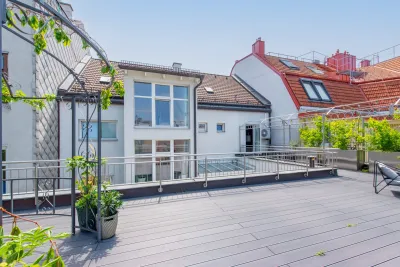 Ein besonderes Highlight sind die entzückenden Dachgärten im Innenhof des Hauses. Diese grünen Oasen bieten einen Rückzugsort vom hektischen Stadtleben und ermöglichen entspannte Stunden im Freien. Hier können Sie Ihre eigenen Blumen und Kräuter anpflanzen, einen gemütlichen Sitzbereich einrichten oder einfach die Sonne genießen. Die Dachgärten verleihen dem Anwesen eine einzigartige Atmosphäre und schaffen eine Verbindung zur Natur mitten in der Stadt.