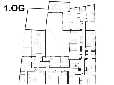 Drei zusammenhängende Gebäude bieten Raum für 16 Wohnungen mit einer Wohnfläche zwischen 35m² und 95m² im 1. und 2. Obergeschoss mit Lift. Jede Wohneinheit verfügt über einen einzigartigen Charakter, die diversen Grundrisse samt Übersicht finden Sie in der Bildergalerie. Im Erdgeschoss des Hauses befinden sich 9 KFZ Stellplätze, ab 90,- Euro p.m., die je nach Verfügbarkeit zusätzlich gemietet werden können.