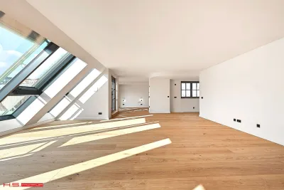 - Die eindrucksvolle Livng Area besticht mit 71m² Fläche und elitären Glaspanoramablick auf die Dächer Wiens.