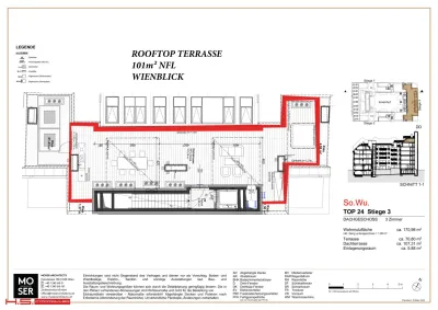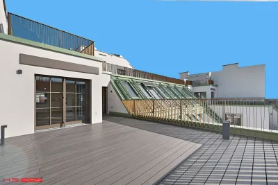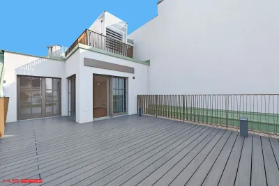 - Über einen Stiegenaufgang gelangt man zu der 100m² große Rooftop Terrasse, die Ihres gleichen sucht.