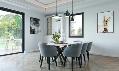 Im Erdgeschoß befinden sich Vorraum inkl. Garderobenbereich, das großzügige Wohn-/Esszimmer mit Küche, (Küche ist nicht dabei), und Kamin, ein Technikraum mit Stauraum und das WC.