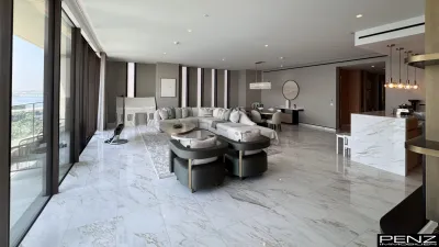 Schon beim Betreten eröffnet sich ein beeindruckender Wohnbereich, durchflutet von natürlichem Licht, das sich auf edlen Marmorflächen spiegelt und den Blick mühelos über das offene Meer bis hin zur Skyline von Dubai lenkt. Die nahtlos integrierte Designerküche mit Kochinsel vereint Eleganz und Funktionalität und wird zum Herzstück jeder Begegnung. Die ineinander übergehenden Räume fließen sanft in mehrere Balkone hinaus – mit einem spektakulären Ausblick auf die Palmenseite wie auch auf das offene Meer.