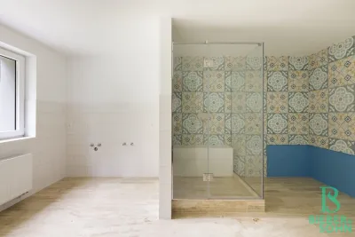 Die offen gehaltene Stiege führt in den 1. Stock, der mit wunderschönen Parkettböden ausgelegt ist und über drei Zimmer, einem Abstellraum und einem luxuriösen Bad mit Wanne, walk-in-Dusche und einem separaten WC ausgestattet ist.
