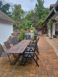 Der Garten, mit Obstbäumen besetzt, erstreckt sich rund um das Gebäude und hält genug Platz auch für ein "Kuchelgartl" oder Hochbeete bereit. Zur Bewässerung gibt es zwei Brunnen.