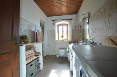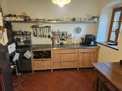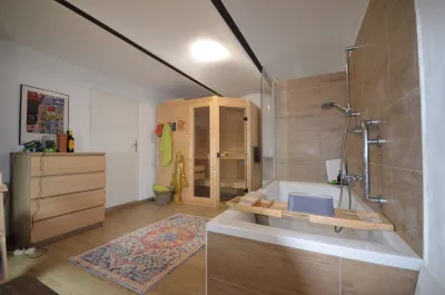 Ein Teil des Gebäudes ist als Wellness-Ecke ausgeführt - bestehend aus einem großzügigen Bad mit WC und einer Sauna. Angrenzend finden Sie noch einen Werkstattraum und einen Weinkeller. Der Dachboden in diesem Teil des Dreikanthofes bietet mit seinen 2 Schlafräumen,, einem weiteren Bad und einem Essplatz, eine tolle Möglichkeit Gäste zu beherbergen, oder dies als Mietobjekt zu nutzen, da es einen eigenen Zugang von außen gibt.