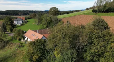 Exklusivangebot für ein Einfamilienhaus - Dreikanthof auf insgesamt ca. 4982 m² Grund in Grünruhelage. Die Liegenschaft befindet sich in einer Streusiedlung in Grünruhelage, liegt einzeln, eingebettet in Buschwerk und Bäumen - ein ehemaliger Bauernhof der renoviert wurde. Eine Mischung aus Alt und Neu bringt eine sehr angenehme Atmosphäre und mit 4 Zimmern und einem großen Dachboden bietet dieses Objekt jede Menge Platz!