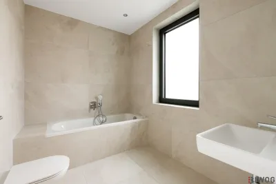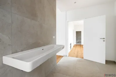 - Geschmackvolle großformatige (75x150 cm) Feinsteinzeugfliesen in den Nassräumen, im Vorraum und im Wirtschaftsraum