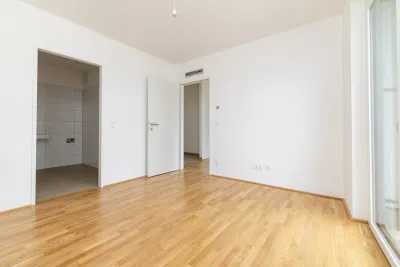 Vom Vorzimmer gelangt man in die großzügige Wohnküche. Diese ist der Mittelpunkt der Wohnung. Dort können Sie gesellige Stunden mit Ihren Liebsten verbringen. Der Balkon kann von der Wohnküche und dem Schlafzimmer aus betreten werden.