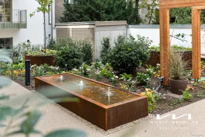Im Herzen der Wohnung entfaltet sich eine lichtdurchflutete Wohnküche von über 75 m² – ein Ort der Begegnung, der Inspiration, des Lebens. Die Fenster öffnen sich zu beiden Seiten hin zu ruhigen Innenhöfen. Einer davon: ein intensiv begrünter Rückzugsort, wo Bäume, Wasser und Grün ein kleines, stilles Paradies formen – ein Ort, der nicht nur den Blick, sondern auch den Geist beruhigt. Diese großartige Wohnung ist ein Zuhause für Menschen mit Blick fürs Schöne, für Künstlerseelen, für jene, die Raum nicht nur bewohnen, sondern erleben wollen.