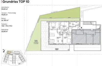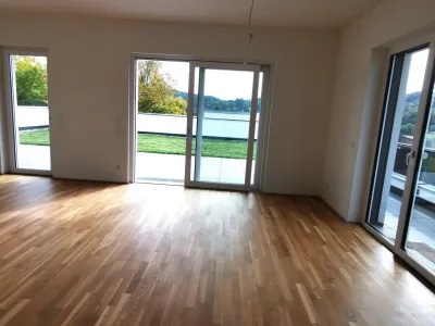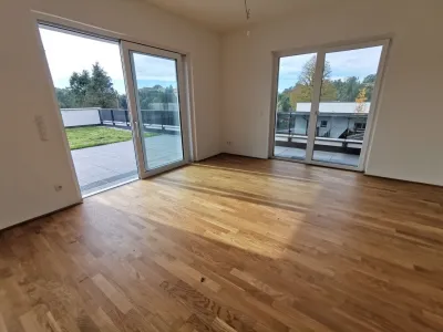 Möchten Sie gerne eine wunderschöne, mit allem Komfort ausgestattete Erstbezugswohnung mit großer Terrasse, dabei aber auch auf einen schönen Garten nicht verzichten? Dann sind Sie hier genau richtig: