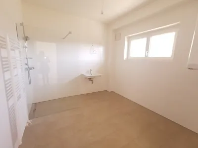 - Feinsteinzeugfliesen in den Bädern und im Vorraum