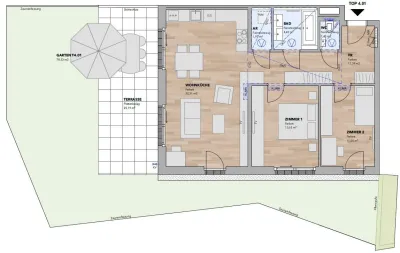 Attraktive 3-Zimmer-Wohnung mit großer Terrasse - Top 1.09