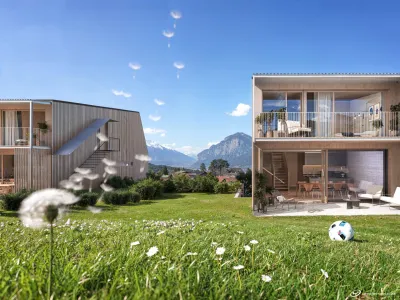 "Wohnen Am Park in Aldrans" sind vier Neubau-Villen in unverwechselbarer Architektur und exklusiver Lage - angrenzend an einen privaten Park mit Baumjuwel und unverbaubarem Blick übers Inntal für lange Sonnenstunden!