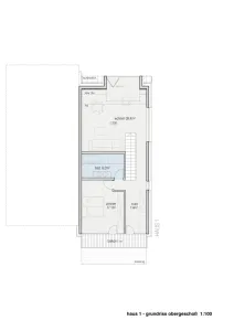 Wenn man die einläufige Treppe ins Erdgeschoß hinauf geht, hat man sofort den direkten Blickbezug zum Koch-/Essbereich, welcher in Richtung Süden, in die vorgelagerte, überdachte Terrasse, sowie den großzügigen Garten übergeht. Zwei ruhige Schlafzimmer mit nordwestlicher Ausrichtung, sowie ein Bad und ein Gäste-WC komplettieren diese Ebene.