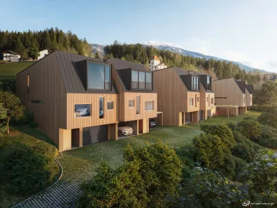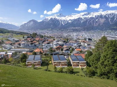Die Häuser verfügen über eine Garage sowie einen zusätzlichen, überdachten Stellplatz. Der private Gartenbereich liegt sonnenseitig, im Süden und bietet einen unverwechselbaren Schlossblick, sowie auf den Patscherkofel.