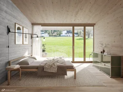 Die Materialwahl folgt einem konsequent nachhaltigen Baukonzept. Im Mittelpunkt steht der Einsatz natürlicher, ökologischer Baustoffe - es handelt sich um ein Niedrigenergiehaus!