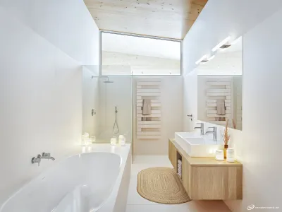 In allen Wohnbereichen wird ein hochwertiger Eichenholzfußboden mit integrierter Fußbodenheizung verlegt. Ein durchdachtes Beleuchtungskonzept ist derzeit in Ausarbeitung und rundet die hochwertige Ausstattung ab.