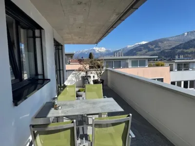 Beim Betreten der Wohnung werden Sie sofort von der offenen und hellen Atmosphäre beeindruckt sein. Der großzügige Wohn-Essbereich mit Dielenboden lädt zum Entspannen und Verweilen ein. Große Fenster sorgen für viel Tageslicht und geben Ihnen einen atemberaubenden Blick auf die umliegenden Berge. An warmen Tagen können Sie die Sonne auf Ihrer eigenen Terrasse genießen und den stressigen Alltag hinter sich lassen.
