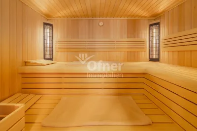 Der 56,76 m² große Pool, der sich im ersten Stock befindet, ist ein echtes Juwel dieser Immobilie. Er ist mit einem Heiz- und Kühlsystem, Gegenstromschwimmen und einer Folienbeschichtung ausgestattet.