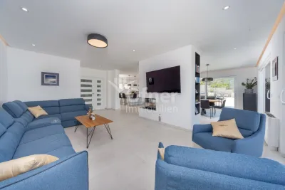 Die Villa ist vollständig möbliert und mit hochwertigem, maßgefertigtem Mobiliar ausgestattet. Die Geräte (Waschmaschinen, Trockner, Öfen, Dunstabzugshauben, Kühlschränke, Kaffeemaschinen) stammen von den besten Herstellern.