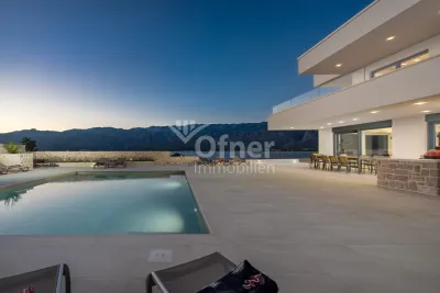 Zum Verkauf steht eine außergewöhnlich luxuriöse und moderne Villa mit Pool und einzigartigem Panoramablick auf das Meer. Diese wunderschöne Villa befindet sich im idyllischen und malerischen Ort Vinjerac, einem kleinen Küstendorf, das mit seiner natürlichen Schönheit und friedlichen Umgebung den Atem raubt. Die Immobilie liegt nur 250 Meter vom kristallklaren Meer und den bezaubernden Stränden entfernt, die ideal für Entspannung und das Genießen der natürlichen Schönheit sind. Sie ist mit prestigeträchtigen 5 Sternen ausgezeichnet, was ihre hervorragende Qualität und Exklusivität widerspiegelt.