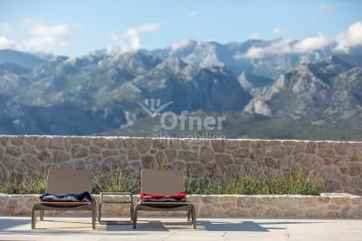 Der Blick von der Villa und ihrem Garten ist einfach bezaubernd. Er erstreckt sich über den blauen Velebit Kanal, das historische Zentrum von Vinjerac, den Velebit und den Nationalpark Paklenica. Der qualitativ hochwertige Urlaub und die Ruhe, die diese wirklich besondere Immobilie an diesem wunderschönen Standort, umgeben von Grünflächen und in unmittelbarer Nähe des Meeres, bietet, sind unersetzlich.