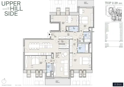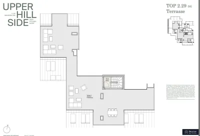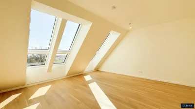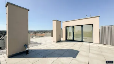 Diese großzügige Maisonette-Wohnung erstreckt sich über zwei Ebenen und beeindruckt mit einer durchdachten Raumaufteilung, hochwertiger Ausstattung und einem Wohngefühl der Extraklasse – ein Rückzugsort mitten in der Stadt, der Raum für Individualität, Ruhe und gehobenen Lebensstil schafft. Bereits beim Betreten der Wohnung empfängt Sie eine klare architektonische Linie, kombiniert mit stilvollen Details und einer einladenden Offenheit. Das Herzstück bildet die lichtdurchflutete Wohnküche mit über 50 m², deren offene Gestaltung vielseitige Nutzungsmöglichkeiten bietet – ob als geselliger Treffpunkt, stilvoller Essbereich oder ruhige Loungezone. Große Fensterflächen sorgen für ein helles Ambiente und verbinden den Innenraum nahtlos mit der angrenzenden Terrasse, die zum Frühstück im Freien oder entspannten Sommerabenden einlädt. Die drei Schlafzimmer der Wohnung sind großzügig angelegt und bieten mit ihren klaren Linien und der optimalen Belichtung Rückzugsorte mit Charakter. Eines der Zimmer bietet direkten Zugang zu einer eigenen Terrasse – ein seltenes Detail, das Komfort und Privatsphäre auf elegante Weise vereint. Gleich drei hochwertig ausgestattete Bäder – darunter ein Bad en suite – sowie ein separates Gäste-WC sorgen für höchsten Wohnkomfort, sowohl für Familien als auch für Gäste. Ergänzt wird das Raumangebot durch zwei praktische Abstellräume und einen Hauswirtschaftsbereich mit Waschmaschinenanschluss. Ein architektonisches Highlight erwartet Sie auf der oberen Ebene: Die über 150 m² große Dachterrasse bietet nicht nur absolute Privatsphäre, sondern auch einen beeindruckenden Panoramablick über die Stadt. Ob Urban Gardening, Sonnenlounge oder Outdoor-Dining – hier entsteht ein einzigartiger Lebensraum unter freiem Himmel, der urbanes Lebensgefühl mit Freiheit und Ruhe verbindet.