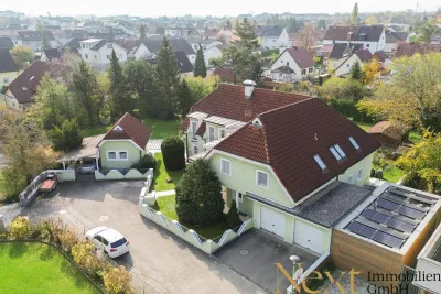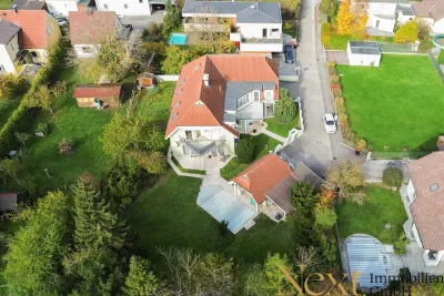 Die gesamte Nutzfläche des Hauses, welches vollständig unterkellert ist, beläuft sich auf etwa 489 m² und schafft damit ideale Voraussetzungen für vielseitige Nutzungsmöglichkeiten. Mit einem optimal durchdachten Grundriss eignet sich das Haus ideal sowohl als Zweifamilienhaus als auch für eine Nutzung als Ordination oder Büro, da sowohl das Erdgeschoss über zwei Bäder und ein WC als auch das Obergeschoss über ein Bad und eine zusätzliche Toilette verfügt.